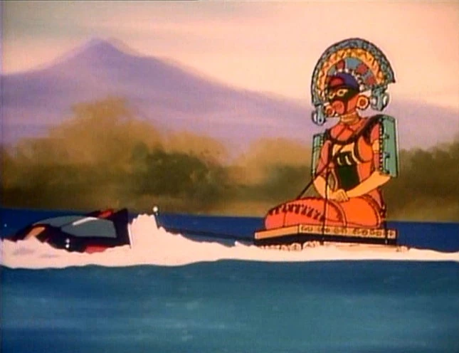 V.E.N.O.M. is trying to steal a giant statue of the Scarlet Empress. At the end, Calhoun accidentally fires his Gulliver mask and shrinks the statue. A bird flies by and takes the statue.